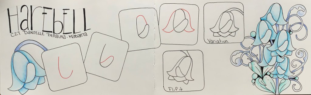 I’m excited to introduce my new tangle “Harebell.” I had a question about garden weeds and was doing research on the internet. One site led to another and from looking at images this tangle evolved.