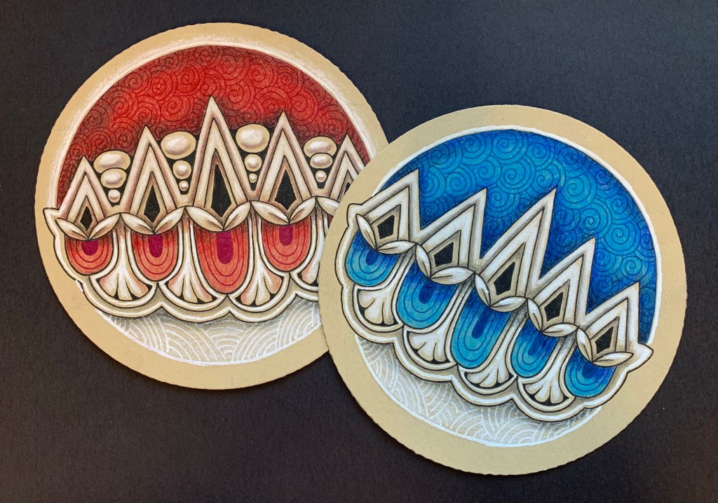 So much fun creating these Zendalas in Anica’s Gabrovec’s Tanglelab. The focal tangle she used was Zenith. Fun playing with lights and darks and color. I love how the white reacts with the tan tile.