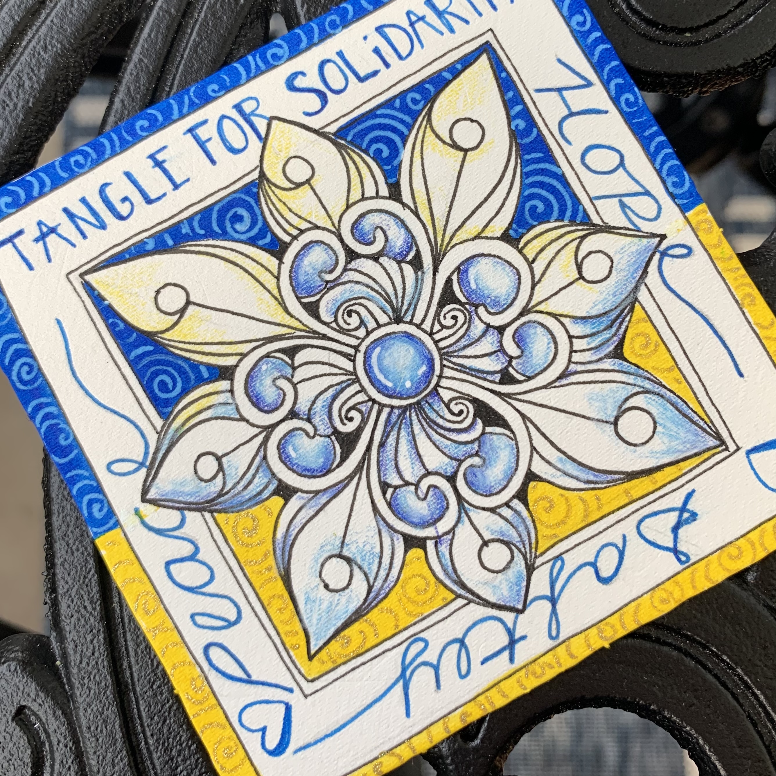 Thank you to the team at 7F5R for another “Tangle for Solidarity.” This time for the people of Ukraine. As time moves forward we must not forget the hardships they are going through and pray for peace.