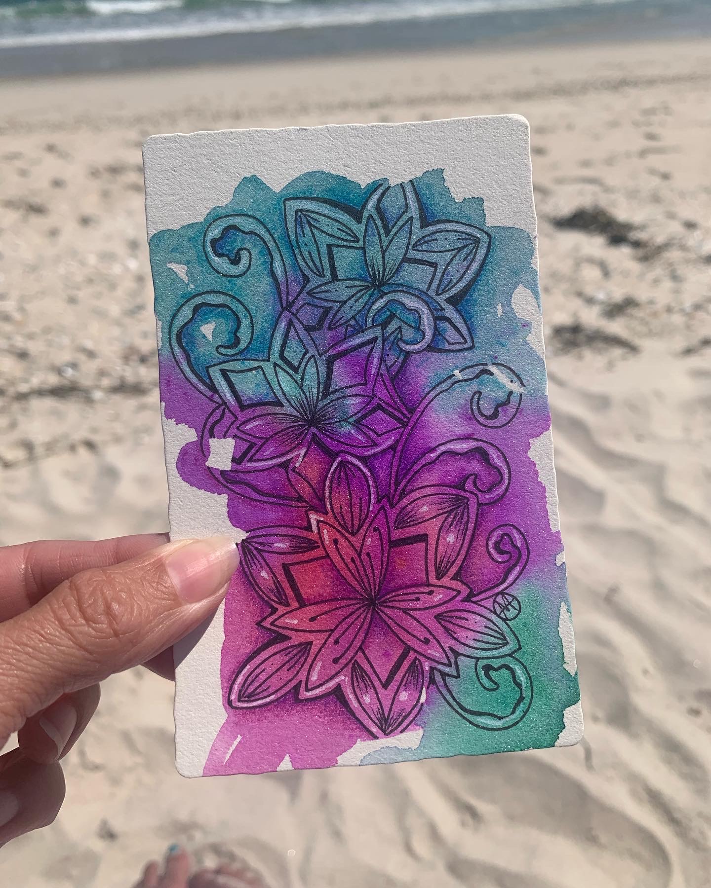 Such an amazing beautiful day at the beach. Such an escape from the crazy week I had. Enjoyed tangling on prepped Magicals tiles when I wasn’t busy collecting shells. I always forget how enjoyable ”Toodles” is.
