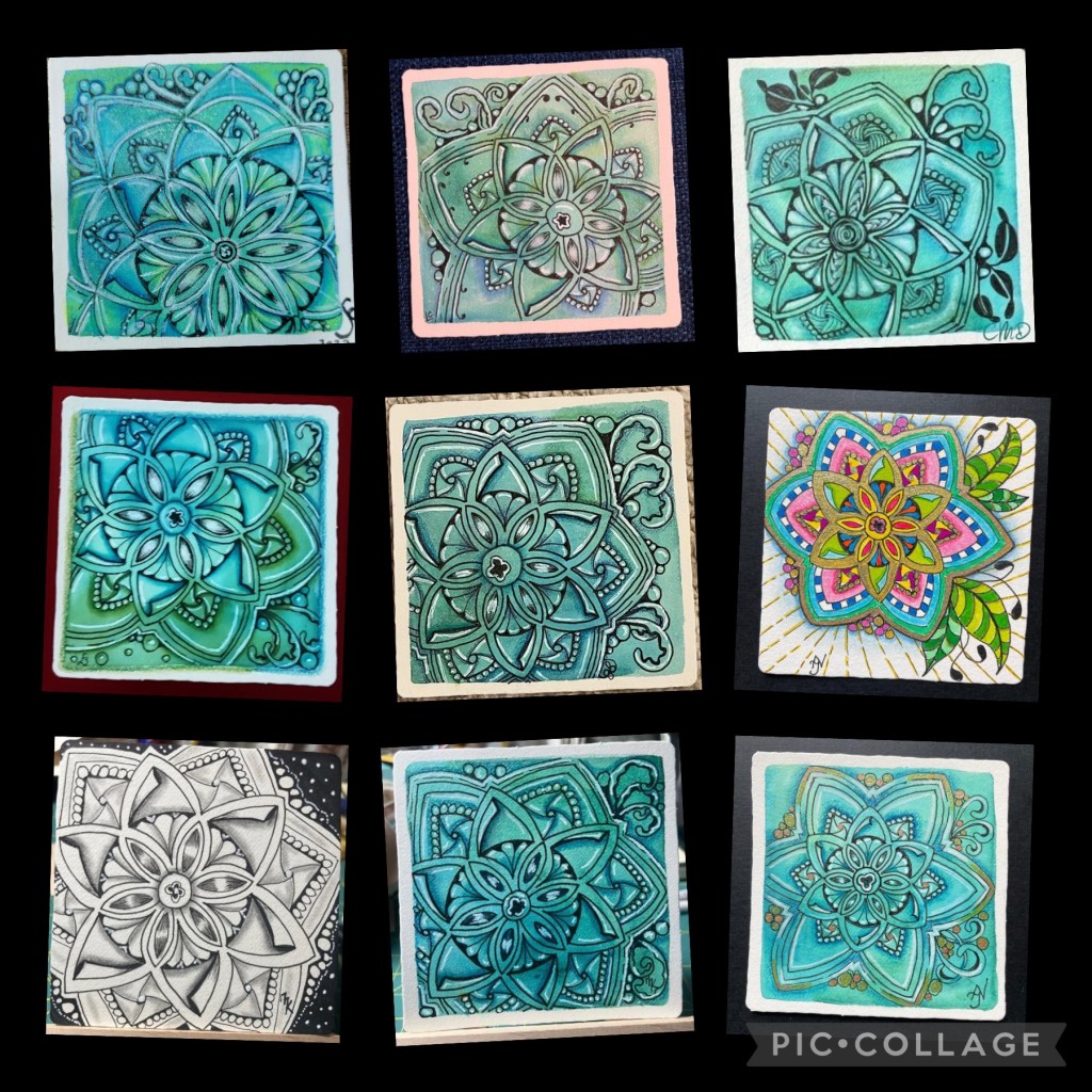 I am in awe of the fabulous tiles that were created last week in Tangle Time Tuesday. Here are a few of the completed tiles.