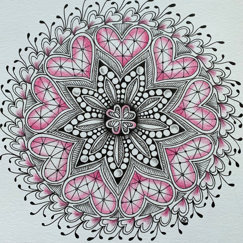 She shaded hers in black and white. I went for a touch of pink for Valentine’s Day.