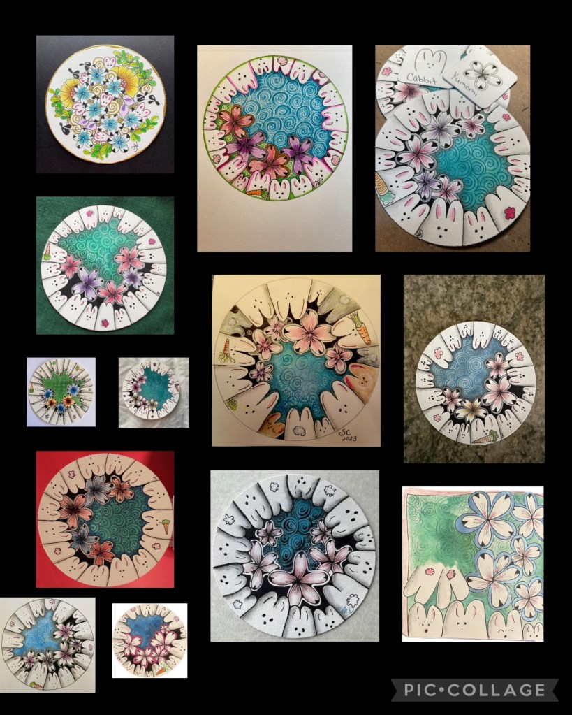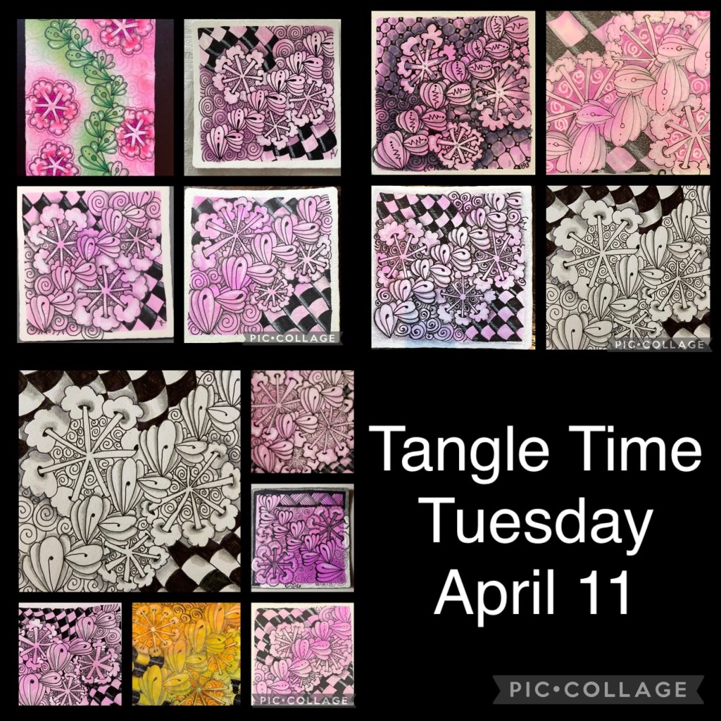 April may have been one of my favorite tangling months! We explored so many different things. Different sized tiles and colors, some new patterns and favorites. Added some humor in with ZIA. Everyone did such a lovely job!