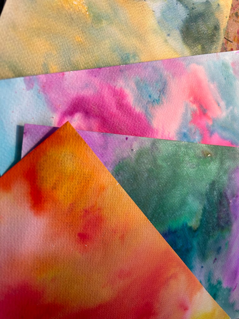 I started with watercolor paper and magicals to create these beautiful papers.
