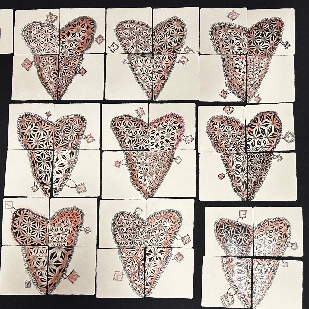 One of my favorite parts of tangling, in a group, are the Mosaics! The joy of seeing everyone’s work together. Love how our pre-strung tiles created hearts in the mosaic! So much thought and care put into everything. If you have the opportunity to tangle with Molly and Martha go for it! You will have the best time!