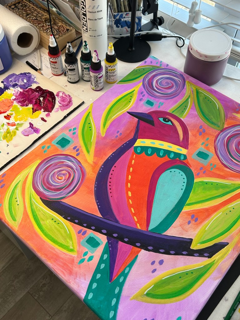When I think of “Boho” I think of bright flowers. The painting at the top is my flower creation.