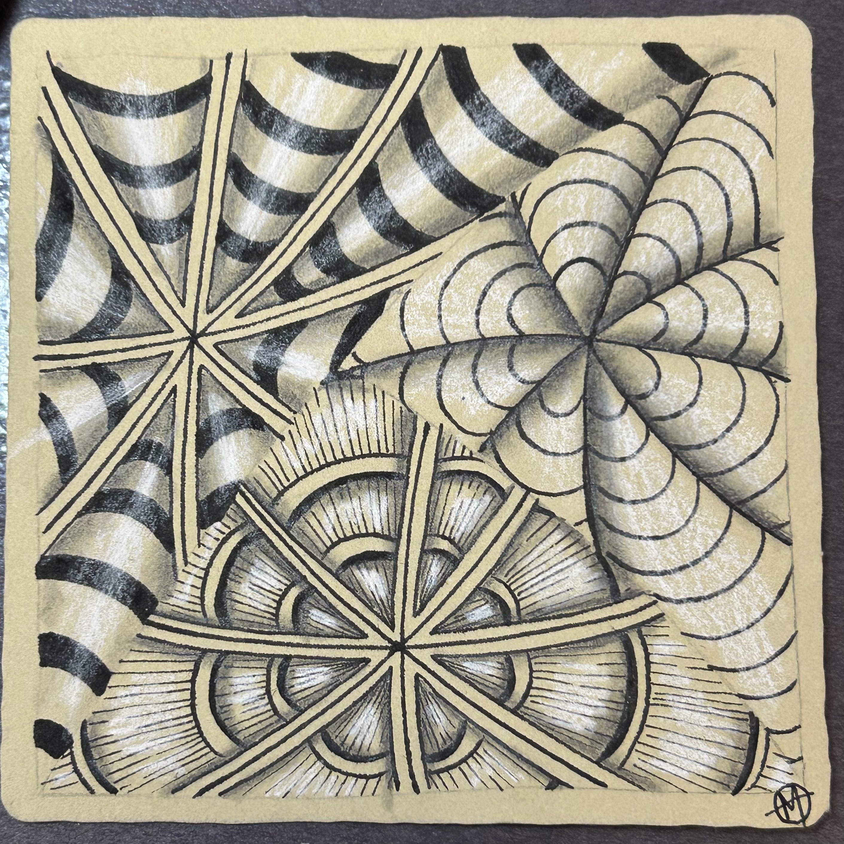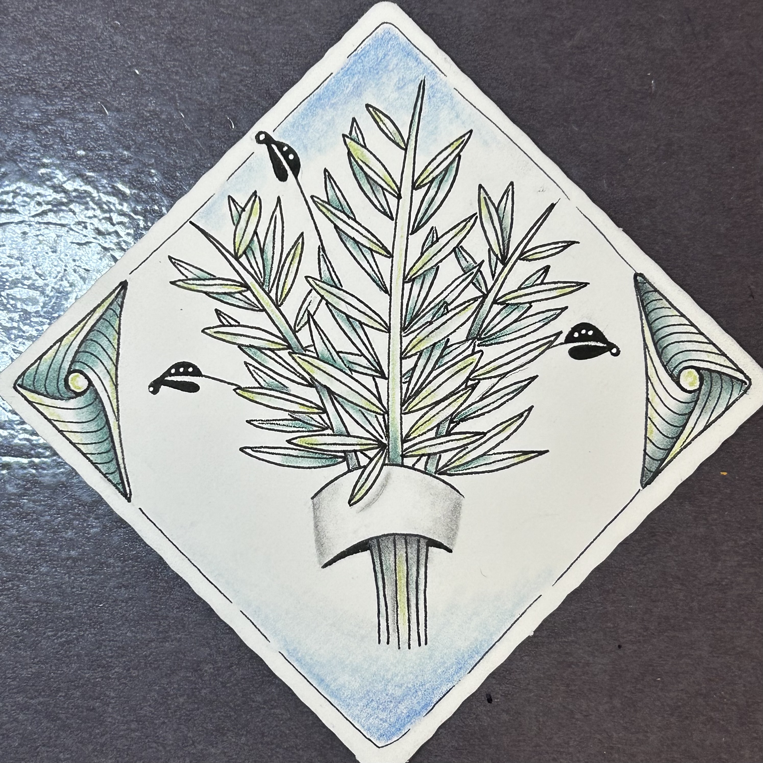 From Sunday to Wednesday, we will be guided by the amazing team at Zentangle Headquarters as we create tiles. In preparation, we’ve been given prompts to complete leading up to the event. Here are my four tiles. I’ve used a mix of traditional Zentangle techniques alongside some Zentangle-Inspired Art (ZIA).