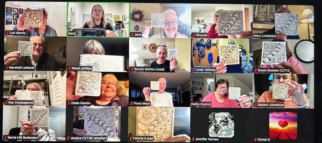 Yesterday was such a special milestone: we celebrated five years of Tangle Time Tuesdays! In preparation, I reached out to as many past students as possible, sending nearly 200 emails. I was so excited to see both familiar faces and those I haven’t seen in a while. I felt truly grateful for the hour we spent together, simply relaxing and tangling.